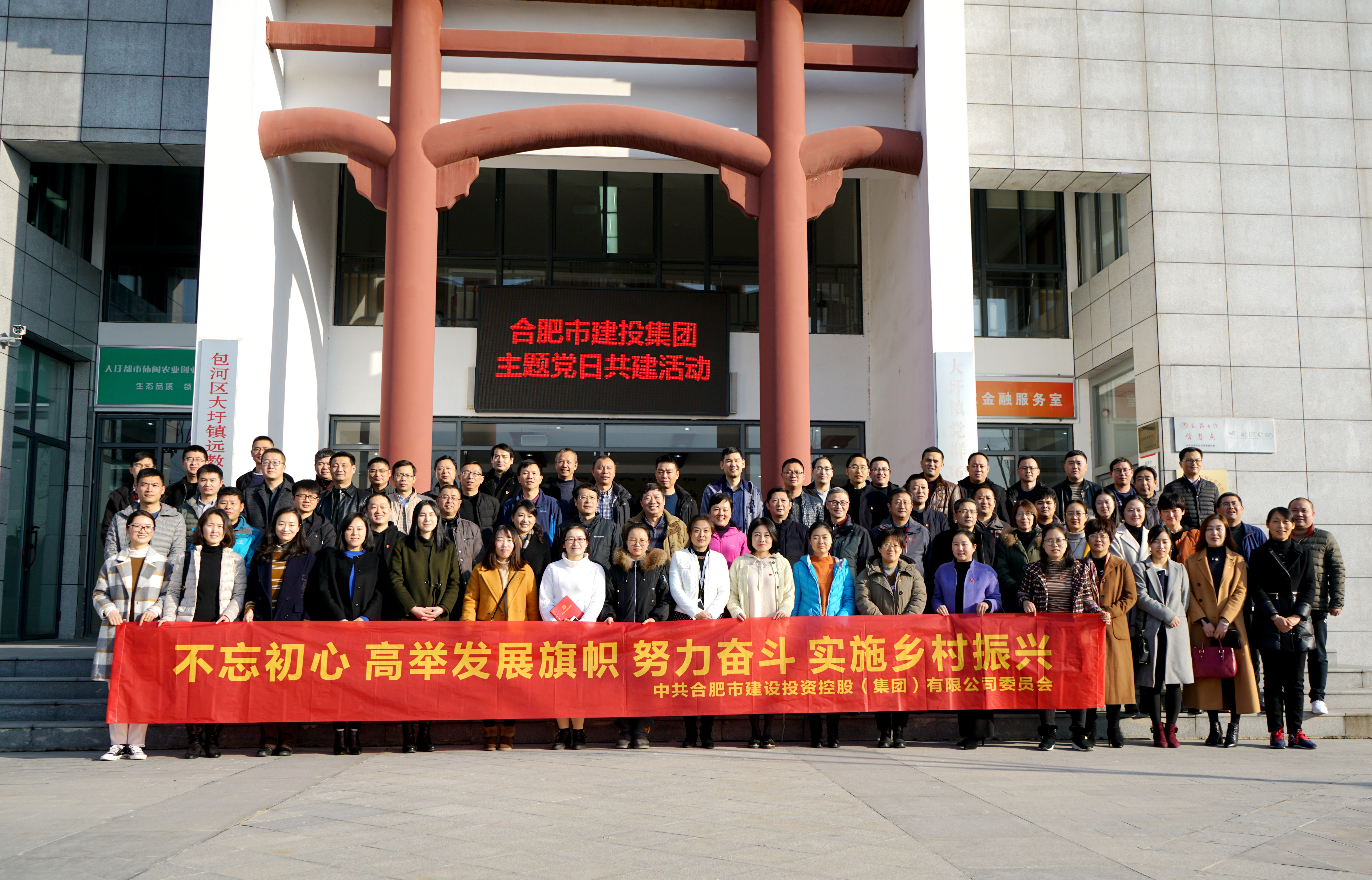 12月18日,正值庆祝改革开放40周年大会隆重召开之际,由建投集团党委主办、合肥乡投党支部承办的“不忘初心高举发展旗帜 努力奋斗实施乡村振兴”主题党日共享共建活动在大圩镇成功举办。来自建投集团本部及所属企业近百名党员参加活动。建投集团党委副书记倪敬东,党委委员、纪委书记、监事会主席黄跃明,党委委员、副总经理、合肥乡投执行董事杨雪蕾,党委委员、总会计师罗文萍以普通党员身份参加此次活动。